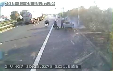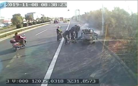 11月8日,在海安328國道西場街道“水星家紡”路段,一輛正在行駛的電瓶三輪車突然著火,驚險時刻,路過此處的106路司乘人員及時出手相助,終于化險為夷。